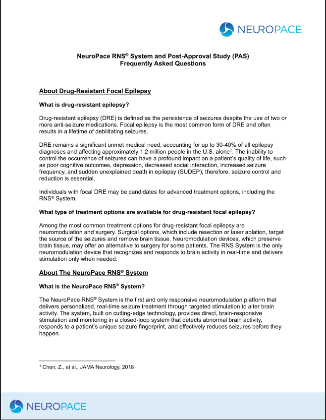 NeuroPace RNS® System and Post-Approval Study (PAS) Frequently Asked Questions